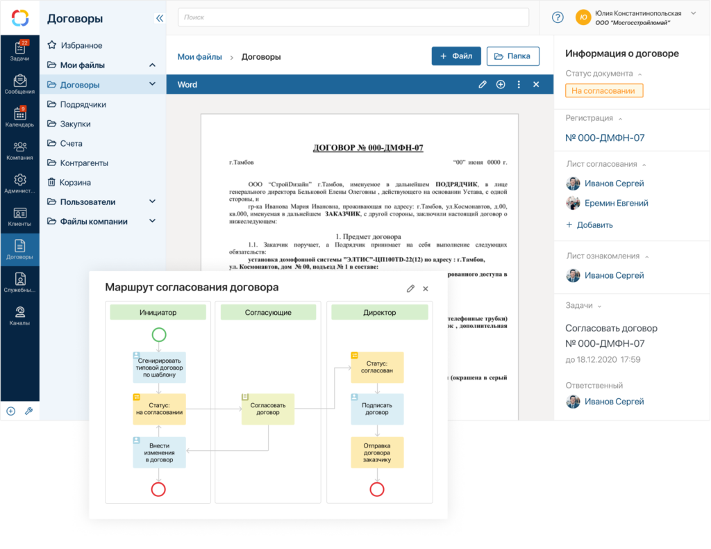 - Организации, ищущие единое пространство для договоров, счетов, приказов и внутренней документации.