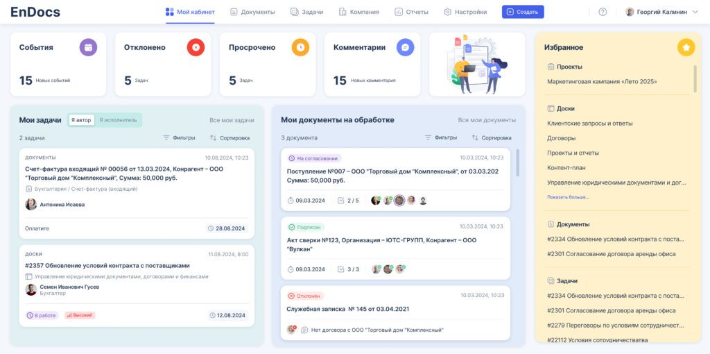 EnDocs — это удобное и функциональное решение для управления документами, сочетающее централизованное хранилище, гибкую настройку прав доступа, поиск по фильтрам и контроль версий в рамках одного решения. Задачи по документам распределяются оперативно, статусы отслеживаются в реальном времени, а процессы остаются прозрачными, предсказуемыми и слаженными для всей команды.
